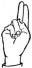 На ћирилици написано ЈОВА ДАНГУБИЋ састоји се из 12 слова [?]. Исписано ћириличном једноручном азбуком за глувонеме: